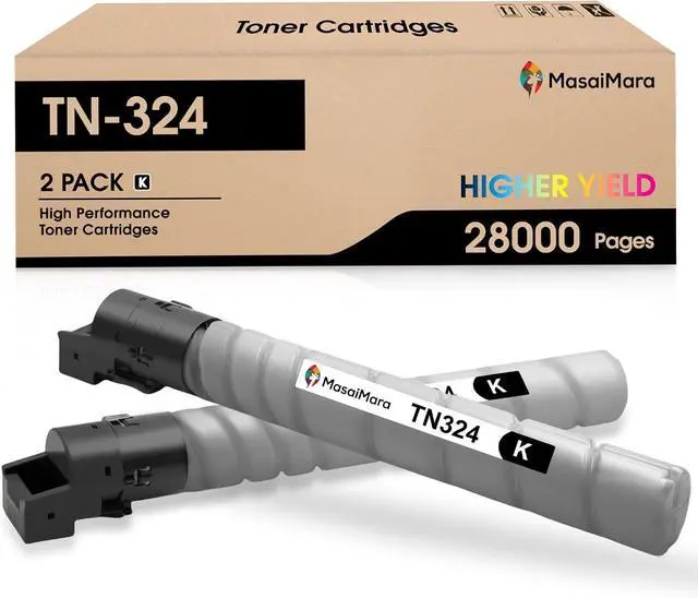Toner Cartridge MasaiMara TN324 TN-324 Black High Capacity Compatible Toner Cartridges for Konica Minolta Bizhub C258 C308 C368 Printer (Black, 2-Pack)