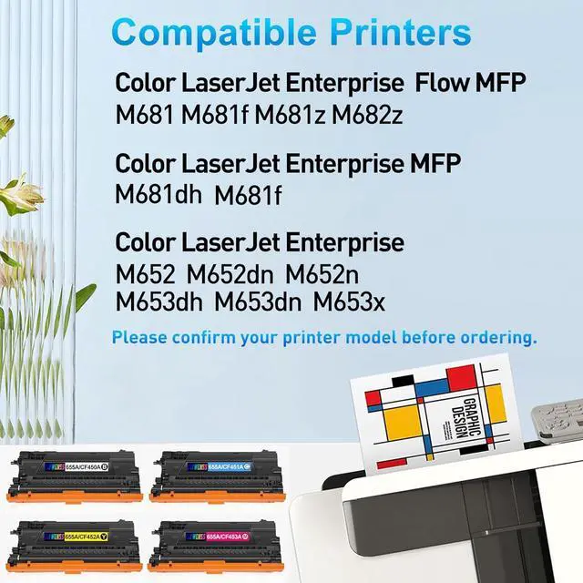 Premium Printout: These 655a cf450a cf451a cf452a cf453a toner cartridge 4 pack for hp printer delivers reliable compatibility sharp text vibrant images and crisp prints