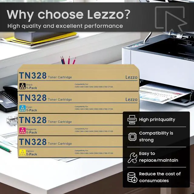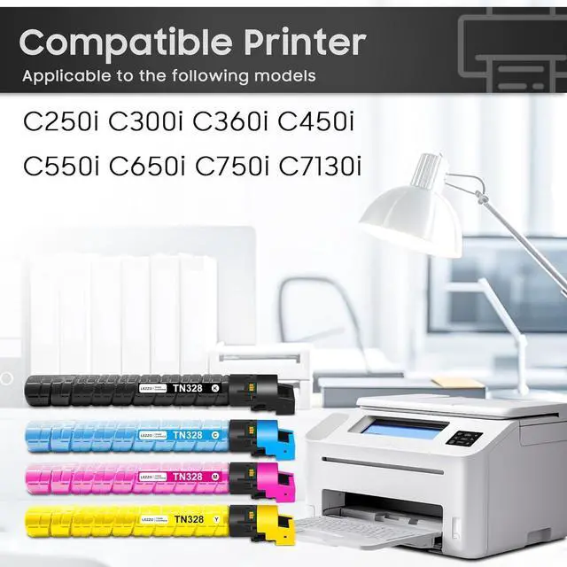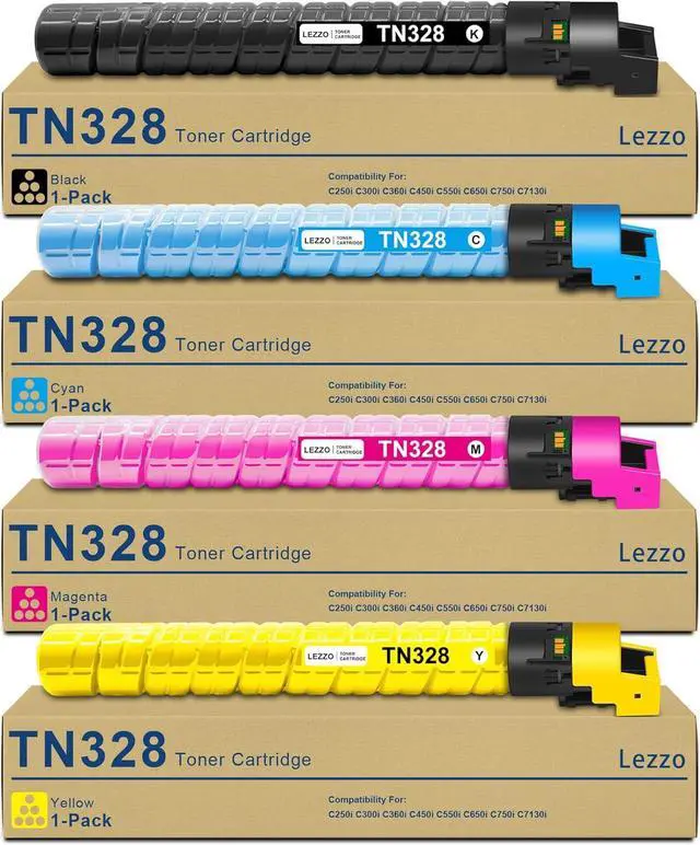 Lezzo TN328 TN626 TN330 TN628 Toner Cartridge 4-Pack Replacement for Konica Minolta TN328K TN328C TN328M TN328Y Toner for Bizhub C250i C300i C360i C550i C650i Printer (Black Cyan Yellow Magenta)