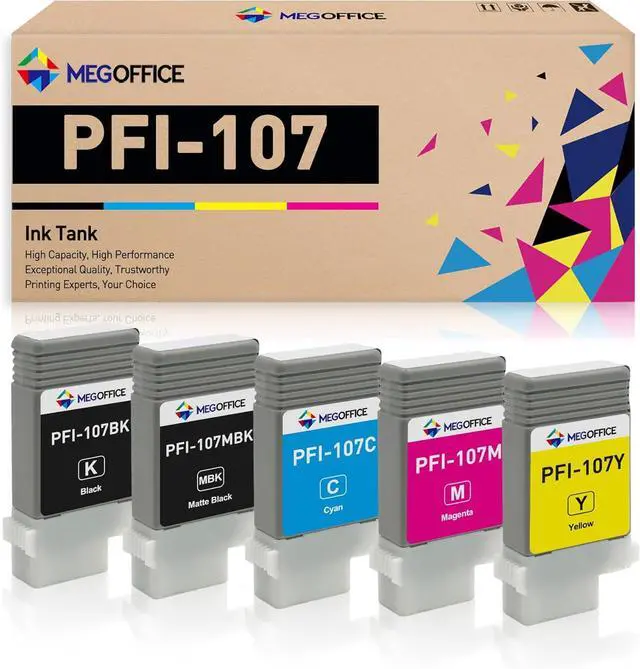 This ItemMEGOFFICE Compatible Ink Cartridge Replacment for PFI-107 130-ml PFI-107MBK PFI-107BK PFI-107C PFI-107M PFI-107Y for Canon iPF780 iPF785 770 685 680 670 (5-Pack, Matte Black/Black/Cyan/Magenta/Yellow)RecommendationsTRICARI Compatible for Canon PFI-107 PFI-107MBK PFI-107BK PFI-107C PFI-107M PFI-107Y Ink Cartridges for Canon imagePROGRAF iPF670 iPF680 iPF685 iPF770 iPF780 iPF785 6-Pack 130ML GTPRI PFI-107 Compatible for Canon PFI-107MBK PFI-107BK PFI-107C PFI-107M PFI-107Y Ink Cartridge for Canon imagePROGRAF IPF670 IPF680 IPF770 IPF780 IPF785 Printer 6-Pack 130ML PFI-107 130ml Ink Tank Compatible for Canon PFI107 PFI-107MBK PFI-107BK PFI-107C PFI-107M PFI-107Y for imagePROGRAF iPF780 iPF785 iPF770 iPF685 iPF680 iPF670, (Matte Black Cyan Magenta Yellow Black) PFI-107 Ink Tank Compatible for Canon iPF780, iPF785, iPF670, iFP770, iFP680, iFP685, Replacement for PFI-107MBK PFI-107BK PFI-107C PFI-107M PFI-107Y (6 Pack, 130ml) Canon PFI-107MBK 130ml Matte Black Ink Cartridge