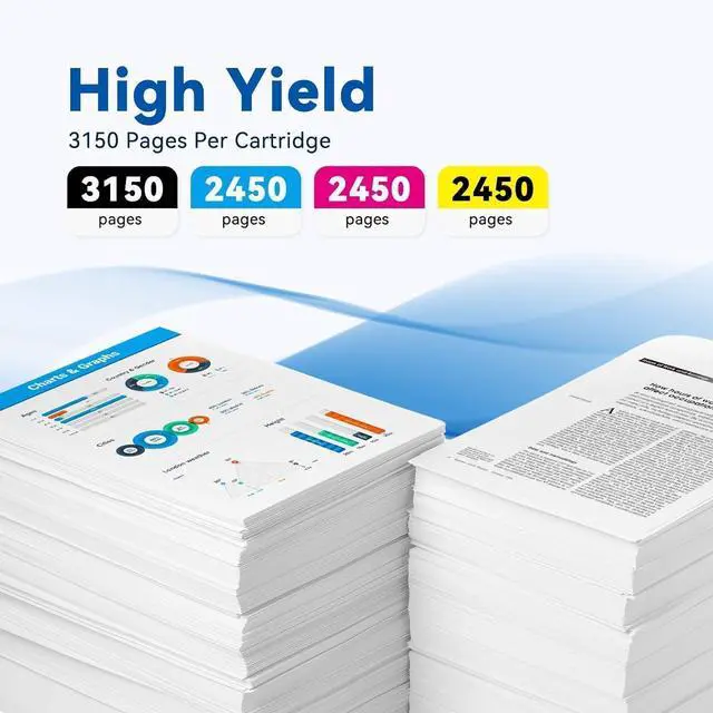 Page Yield: Black is 3,150 pages per cartridge and Color is 2,540 Pages per cartridge at 5% coverage