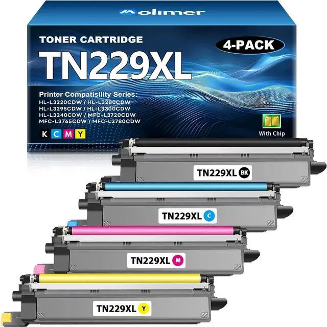 Include: 4-Pack TN229XL Multi-Color Toner, Have Respectively Black, Cyan, Magenta, Yellow (With Chip)