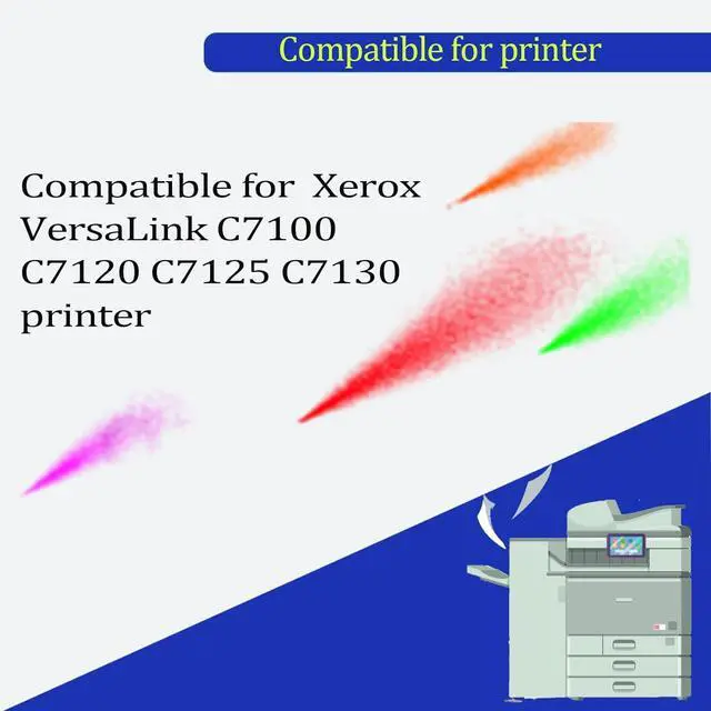 Focused on delivering exceptional performance and sustainability, our products are perfect for personal and professional use, whether you're printing documents, photos or any other material. Introducing our high quality Toner Cartridge, compatible for Xerox VersaLink C7100 C7120 C7125 C7130 printers and designed to enhance your printing experience. Our Toner Cartridge are made from high-quality materials, ensuring durability and long-lasting performance. High-yield printed pages make your work run more smoothly. Black prints 31300 pages. Using cutting-edge technology and advanced engineering, your installation is worry-free. We all provide outstanding print quality that leaves a lasting impression. It's designed for high-volume printing, allowing you to efficiently handle large printing projects. This not only saves you time but also reduces overall printing costs, making it an economical choice for businesses or individuals with high printing needs. We are proud of our commitment to environmental sustainability. Our products are made of eco-friendly materials, safe for the environment and easy to recycle. By choosing our products, you can contribute to a greener future, reduce waste and minimize your carbon footprint. As an seller, we strive to provide you with the best customer experience. We offer a variety of Toner Cartridge to ensure you find the perfect fit for your printer. With our high quality, compatibility, high page yields, excellent print quality, easy installation and environmentally friendly features, we are confident that our printer Toner Cartridge will exceed your expectations. Upgrade your printing experience today and enjoy the convenience, reliability and sustainability our products offer.