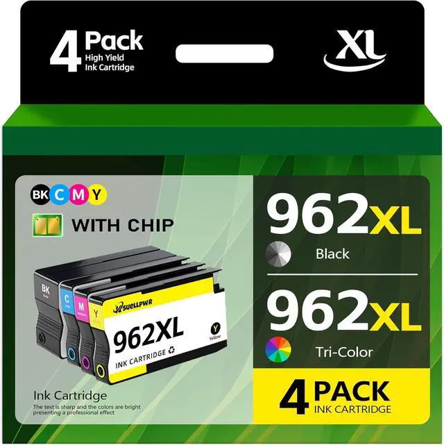 Package Contents: 4 Pack of compatible ink cartridges for hp ink 962xl black and color combo pack ( 1 Black, 1 Cyan, 1 Magenta, 1 Yellow)