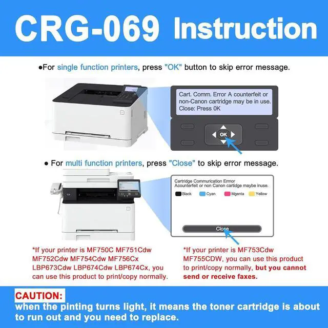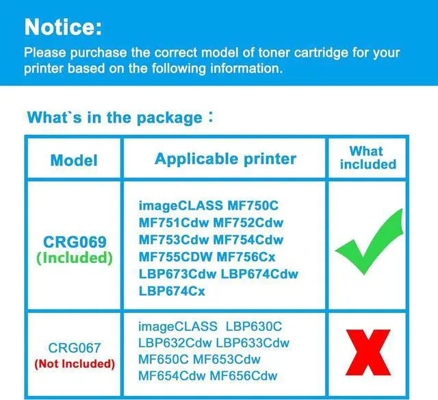 This ItemLCL Remanufactured 069 Toner Cartridge Set Replacement for Canon 069 069h imageCLASS MF753Cdw MF751Cdw MF752Cdw LBP674Cdw MF750C MF754Cdw MF755CDW MF756Cx LBP673Cdw LBP674Cx (4-PK KCMY)Recommendations069H Toner Cartridge Set - 4 Pack Replacement for Canon MF753Cdw Toner Cartridges 069H 069 to use with Color ImageCLASS Mf753cdw MF751Cdw MF752Cdw LBP674Cdw MF752Cdw MF756Cx LBP673Cdw (B/C/Y/M) 069 Toner Cartridge Set - 2 Pack Replacement for Canon 069 Toner Cartridge Set 069H Works for Canon Color ImageCLASS Mf753cdw MF751Cdw MF752Cdw LBP674Cdw MF752Cdw MF756Cx LBP673Cdw LBP674Cx (Black) 069 Toner Cartridge Set MF753Cdw - 4 Pack Replacement for Canon 069 Toner Cartridge Set 069H Works for Canon Color ImageCLASS Mf753cdw MF751Cdw MF752Cdw LBP674Cdw MF752Cdw MF756Cx LBP673Cdw (B/C/Y/M) PANINK Compatible 067H Toner Cartridge Replacement for Canon 067 067H CRG-067H MF656Cdw Toner Cartridge Set for Canon imageCLASS LBP632Cdw LBP633Cdw MF653Cdw MF654Cdw MF656Cdw Printer (with Chip) 067H 067 Toner Cartridge Set - MF656Cdw MF654Cdw Toner Replacement for Canon 067 067H, for Canon MF656cdw Toner Cartridges, for Color ImageClass MF656Cdw LBP632Cdw MF654Cdw MF653Cdw LBP633Cdw (4 Pack)