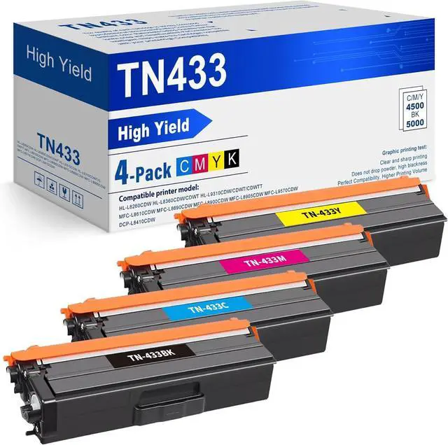 Package Includes: TN433BK TN433C TN433M TN433Y;4-Pack Brother 433 toner cartridges