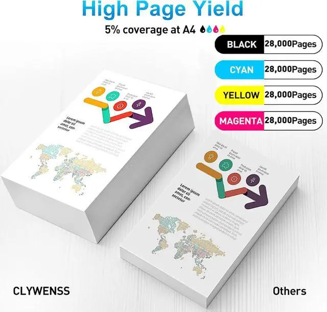 Premium Printout: The tn626 tn-626 tn626k/c/m/y high yield toner cartridge delivers reliable compatibility, sharp text, vibrant images and crisp prints