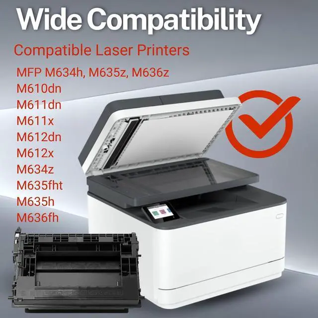 THIS CARTRIDGE WORKS WITH: HP M634h, M635z, M636z; M610dn, M611dn, M611x, M612dn, M612x; MFP M634z, M635fht, M635h, M636fh.