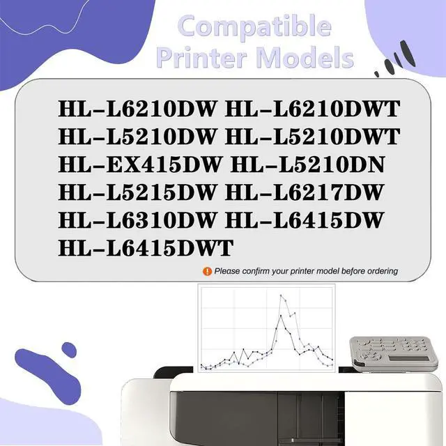 The item is compatible with HL-L6210DW HL-L6210DWT HL-L5210DW HL-L5210DWT HL-EX415DW HL-L5210DN HL-L5215DW HL-L6217DW HL-L6310DW HL-L6415DW HL-L6415DWT printers