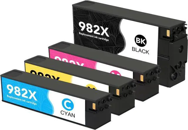 982X ink cartridges for HP printer combo Package Contents982X 4-Pack standard yield black color ink cartridges replacement for HP 982X ink. 1 x 982X Black, 1 x 982X Cyan, 1 x 982X Magenta, 1 x 982X Yellow