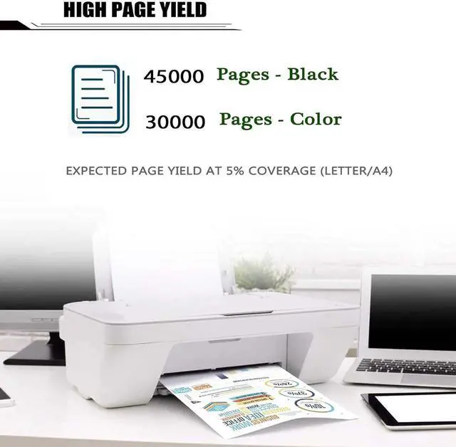Estimated Page Yield: About 45000 pages in black; about 30000 pages in color, under 5% coverage of A4 paper