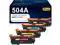 Package Includes: 4 Pack 504A Toner Cartridges, (1 x Black CE250A, 1 x Cyan CE251A, 1 x Magenta CE253A, 1 x Yellow CE252A)