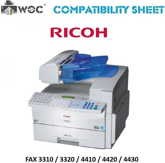 WORLDS OF CARTRIDGES Compatible Toner Cartridge Replacement for Ricoh 430347 / Type 1160 (Black). Each product is individually print tested and guaranteed to perform with compatible OEM fax/printer and does not void your fax/printer's warranty. FOR USE IN: Ricoh FAX 3310L, 3310Le, 3320L, 4410L, 4410NF, 4420L, 4420NF, 4430L, 4430NF. YIELD: 5,000 pages (@ 5% coverage). WORLDS OF CARTRIDGES products are guaranteed to meet or exceed original OEM products in both print quality and page yield. They are primarily made in ISO 9001/14001 and STMC quality certified factories using the highest quality new and recycled components. WARRANTY: Premium 100% full lifetime guarantee. See WORLDS OF CARTRIDGES profile page for more information.