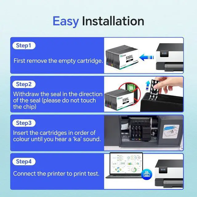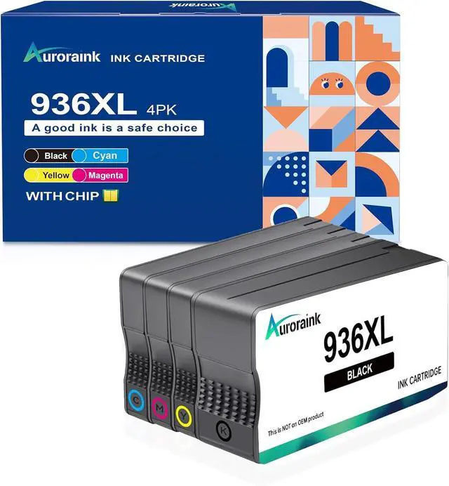 Contents of the package - Auroraink 936-xl Compatible with hp 936xl ink cartridges combo pack (1 * 936XL Black ink cartridge, 1 * 936XL Cyan ink cartridge, 1 * 936XL Magenta ink cartridge, 1 * 936XL Yellow ink cartridge)