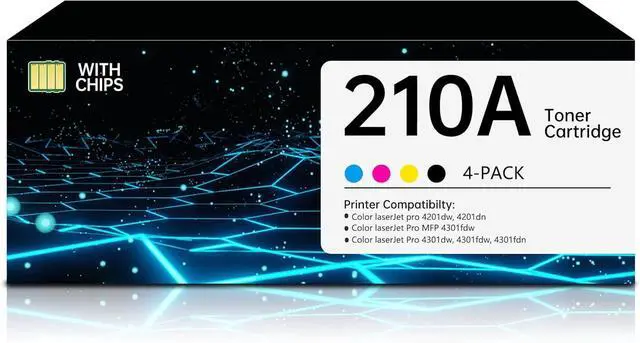 This Item210A 210X Toner Cartridges 4 Pack (with Chip) Replacement for HP 210A 210X W2100A W2101A W2102A W2103A | to Use with HP Color Laserjet Pro 4201dn 4201dw MFP 4301fdw 4301fdn 4301dw (4 Pack) Recommendations210A Black Toner Cartridges 2-Pack | Replacement for HP 210A W2100A Works with Color Pro 4201dn 4201dw Pro MFP 4301fdn 4301fdw Printer | with Chip 210A Toner Cartridges 4-Pack Replacement for HP 210A 210X Toner Color Pro MFP 4301fdw 4301fdn 4301dw Color Pro 4201dw 4201dn Printer (with Chip) 210A Toner Cartridges 4 Pack 210X Color Laser Jet MFP 4301fdw Compatible for HP 210A 210X Toner Cartridges for HP210A HP210X for Color Laser Jet Pro MFP 4301fdw 4301dw 4301fdn 4201dw 4201dn Printer Compatible Toner Cartridge Replacement for HP 206A 206X(with Chip, Black Cyan Yellow Magenta, 4-Pack Set)for Color Laserjet Pro MFP M283fdw M283cdw M283fdn M282mw M255dw M255nw M283 M255 W2110A W2110X 410A Toner Cartridges 4 Pack-Replacement for HP 410A HP 410X to use with HP MFP M477fnw Toner, HP Color Laserjet Pro M477fdw Toner, M452dn, M477 M452 Series, CF410A(Black, Cyan, Magenta, Yellow)