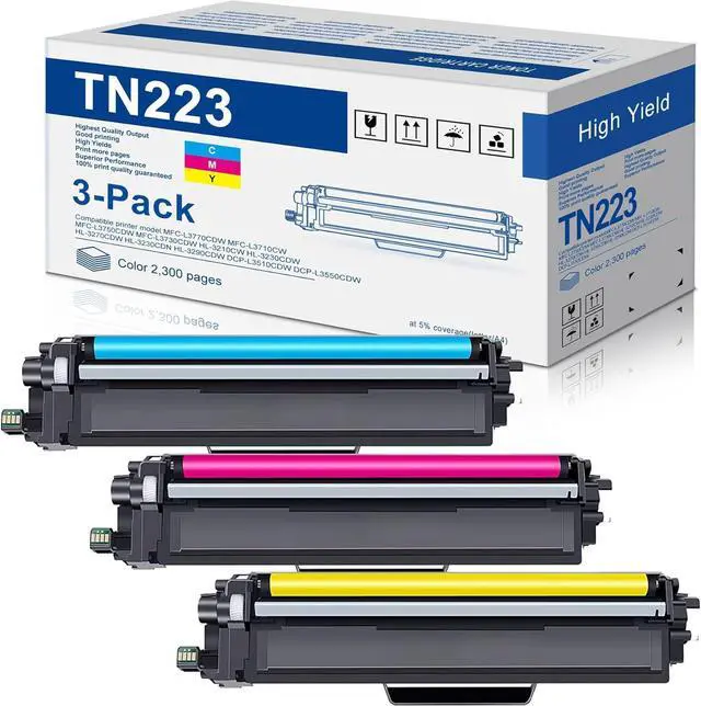 This Item3 Pack TN-223 TN223 C/M/Y Toner Cartridge Compatible TN223 TN223C TN223M TN223Y Toner Cartridge Set Replacement for Brother MFC-L3770CDW MFC-L3710CW MFC-L3750CDW HL-3230CDW HL-3290CDW PrinterRecommendationsTN223 TN-223BK/C/M/Y Toner Cartridges 4 Pack Replacement for Brother TN-223 TN223BK/C/M/Y Toner HL-L3290CDW MFC-L3750CDW Printer Toner, TN2234PK (TN223BK, TN223C, TN223M, TN223Y) TN227 TN-227BK/C/M/Y High Yield Toner Cartridge: HL-L3290CDW Compatible Replacement for Brother TN-223BK/C/M/Y TN-227 TN223 TN 227 for HL-L3270CDW MFC-L3770CDW MFC-L3750CDW HL-L3210CW Printer 5 Pack 4 Pack TN-223 TN223 TN227 TN-227BK/C/M/Y Toner Replacement for Brother TN223BK/C/M/Y Toner Cartridge for TN223BK, TN223C, TN223M, TN223Y Toner Cartridge Set, TN2234PK E-Z Ink TN227 Compatible Toner Cartridge Replacement for TN-227BK/C/M/Y High Yield Brother TN227 TN227BK TN223 to use with HL-L3270CDW HL-L3230CDW HL-L3210CW HL-L3290CDW MFC-L3710CDW (4 Pack) Brother Genuine Cyan, Magenta and Yellow Toner Cartridge Set, TN223C, TN223M, TN223Y