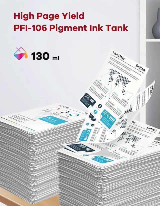 Easy Installation and Use: Our PFI-106 ink cartridges are designed for easy installation and use, so you can spend less time troubleshooting and more time printing. Simply pop them in, and you're ready to go!