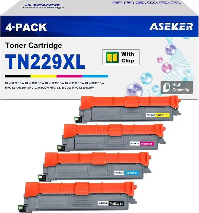 This ItemASEKER TN229XL TN-229XL TN229 XL Toner Cartridge Compatible for MFC-L3780CDW MFC-L3720CDW HL-L3280CDW HL-L3220CDW MFC-L3765CDW HL-L3300CDW HL-L3295CDW Printer TN229XLBK/C/M/Y (4 Pack)RecommendationsTN229XL High Yield Toner Cartridge Replacement for Brother TN229 to Compatible with HL-L3220CDW, L3280CDW, L3295CDW, L3300CDW, L8245CDW,MFC-L3720CDW, L3765CDW, L3780CDW, L8395CDW (4PACK BK/Y/C/M) TN229 TN229XL Toner Compatible for Brother TN229 Toner Cartridges High Yield 229XL TN229XXL to use with Brother MFC-L3780CDW HL-L3280CDW HL-L3220CDW MFC-L3720CDW HL-L3295CDW HL- L3300CDW (4 Pack) TN-760 High Yield Toner Cartridges Compatible for Brother HL-L2305DW, HL-L2350DW, HL-L2395DW, HL-L2390DW, HL-L2370DW, HL-L2370DWXL, MFC-L2690DW, MFC-L2710DW, MFC-L2717DW, MFC-L2730DW, (4 Pack) TN760