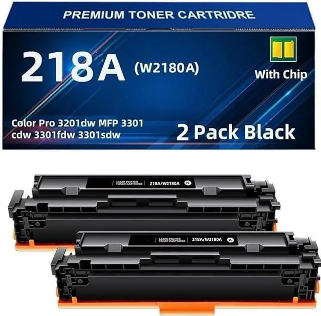 Keep your office printing running smoothly with this high-yield black toner cartridge replacement for HP 218X/218A. This 2-pack of cartridges comes equipped with chips for seamless compatibility with HP Color Laser Jet Pro models including 3201dw MFP, 3301cdw MFP, 3301fdw MFP, and 3301sdw. These cartridges deliver crisp, professional-quality black prints for all your business documents. The high-yield design means fewer cartridge changes and more efficient printing for busy offices. Each cartridge in this value pack is designed to work right out of the box - simply install and start printing. Perfect for offices that need reliable, consistent print quality while managing printing costs effectively.