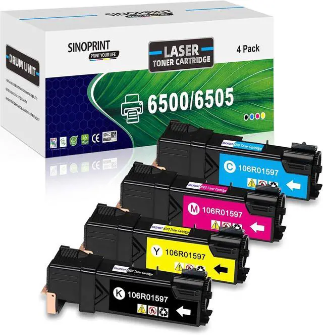 This ItemSINOPRINT Phaser 6500 WorkCentre 6505 Toner Cartridges Replacement for 106R01594 106R01595 106R01596 106R01597 for Xerox Phaser 6500 6500N 6500DN WorkCentre 6505 Printer (4 Packs Color) RecommendationsEF Products Replacement Toner Cartridge for Xerox Phaser 6500 Workcentre 6505 ( Black 106R01597, Yellow 106R01596, Magenta 106R01595, Cyan 106R01594, 4-Pack) SANQUYLL 6500 6505 Toner Cartridge Compatible for Xerox Phaser 6500 WorkCentre 6505 Printer for 106R01594 106R01595 106R01596 106R01597 (4