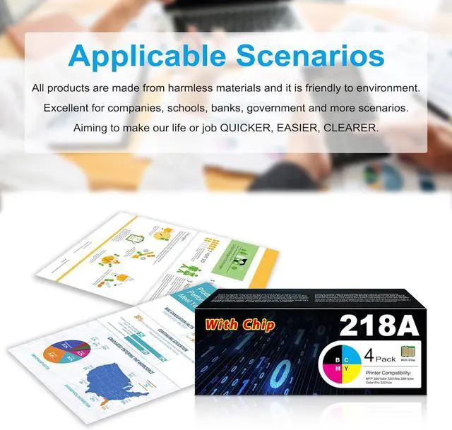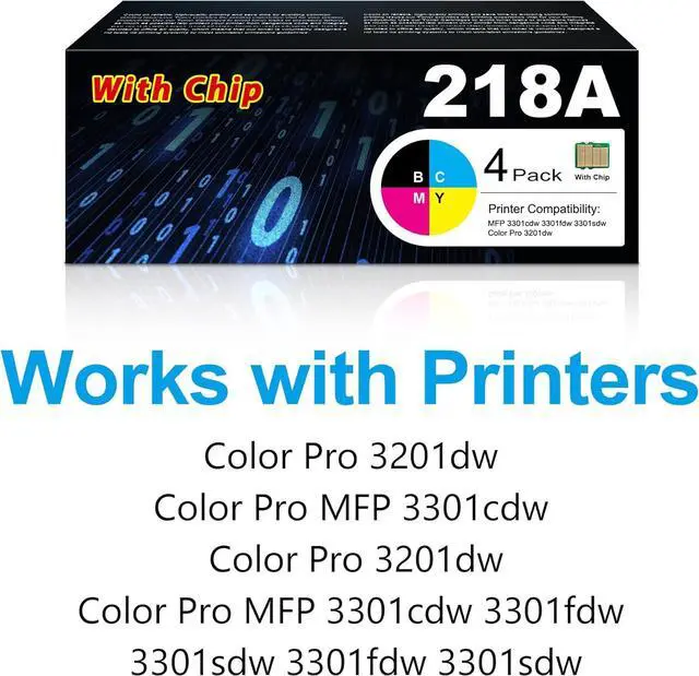 This ItemYanbeleme 218A Toner Cartridges 4 Pack (with Chip) Replacement for 218A 218X High Yield Toner Cartridges Works with Color Pro 3201dw MFP 3301 3301fdw 3301sdw 3301cdw PrinterRecommendations218X 3301fdw Toner Cartridges High Yield (With Chip) Replacement for HP 218X Toner Cartridges 4 Pack 218A Color Pro MFP 3301fdw 3301cdw 3201dw 3301sdw Printer W2180X W2180A (Black/Cyan/Magenta/Yellow) 218A Toner Cartridges 4 Pack (No Chip) Compatible 218A High Yield Toner Cartridge Set - Replacement for HP Color MFP 3301cdw 3301fdw 3301sdw Color Pro 3201dw Printer 414A Toner Cartridges 5 Pack High Yield Replacement for HP 414A Toner 414X (with Chip) Works with Color Pro Pro M454dw M454dn MFP M479 M479fdw M479fdn Printer W2020A Yanbeleme 210X High Yield Toner Cartridges 5 Pack (with Chip) Replacement for 210X for Color Pro MFP 4301fdw 4301fdn 4301dw Color Pro 4201dn 4201dw Series Printer (2B/1C/1M/1Y)