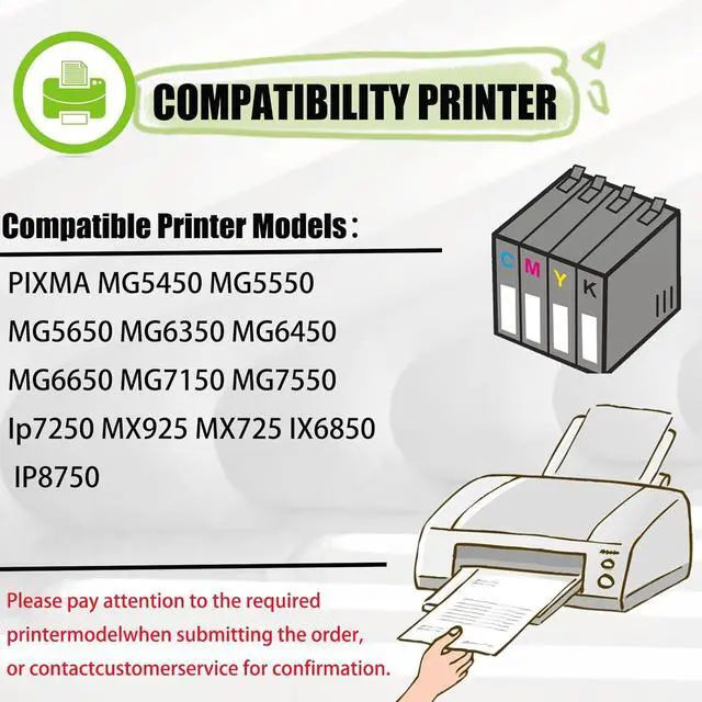 Compatible for Canon PIXMA MG5450 MG5550 MG5650 MG6350 MG6450 MG6650 MG7150 MG7550 Ip7250 MX925 MX725 IX6850 IP8750