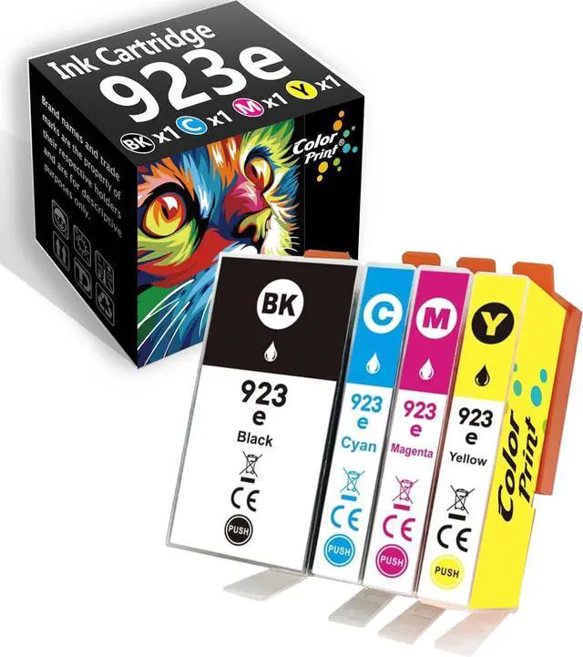 Package Contents: 4-Pack Compatible Ink Cartridge Replacement for HP 923e Ink Cartridge (923e Black Ink, 923e Cyan Ink, 923e Magenta Ink, 923e Yellow Ink)