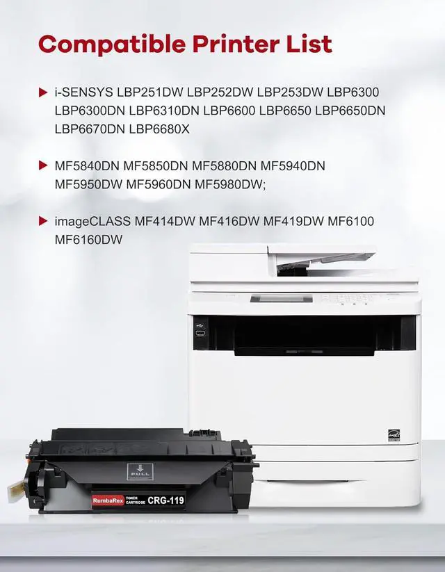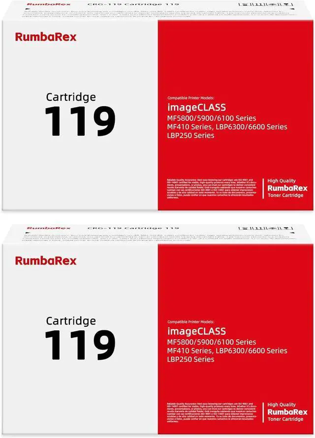 This ItemCRG119 119 Toner Cartridge 2-Pack 3479B001 Replacement for Canon 119 CRG-119 Toner Cartridge for Canon imageCLASS MF414dw MF416dw MF419dw MF5950dw MF5960dn LBP251dw LBP253dw LBP6670dn PrinterRecommendationsTESEN Compatible Toner Cartridge Replacement for Canon 119 CRG-119 3479B001AA Toner Black for use with Canon ImageClass MF414dw MF416dw MF419dw MF5950dw MF5960dn LBP251dw LBP253dw LBP6670dn 2PK v4ink 2PK Compatible Toner Cartridge Replacement for Canon 119 CRG-119 3479B001AA Toner for Canon ImageClass mf414dw mf416dw mf419dw mf5950dw mf5960dn lbp251dw lbp253dw lbp6670dn Printer v4ink 4PK Compatible Toner Cartridge Replacement for Canon 119 CRG-119 3479B001AA Toner for Canon ImageClass mf414dw mf416dw mf419dw mf5950dw mf5960dn lbp251dw lbp253dw lbp6300dn Printer 119 High-Yield Black Toner Cartridge 2-Pack Replacement for Canon 119 Toner Cartridge for ImageCLASS LBP6300dn MF5960dn LBP6650dn MF5950dw MF6180dw MF6160dw MF414dw MF416dw Printer High Capacity 119 II Black Toner Cartridge (1-Pack) - PINOS Compatible CRG119 II Toner Replacement for Canon 119 II Toner imageCLASS LBP6650dn MF5960dn MF5950dw MF6180dw Printer, 3480B001