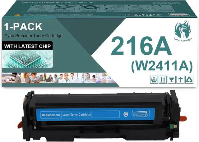 The 216A toner cartridge compatible for HP 216A black W2410A, cyan W2411A, magenta W2413A, and yellow W2412A toner cartridges.