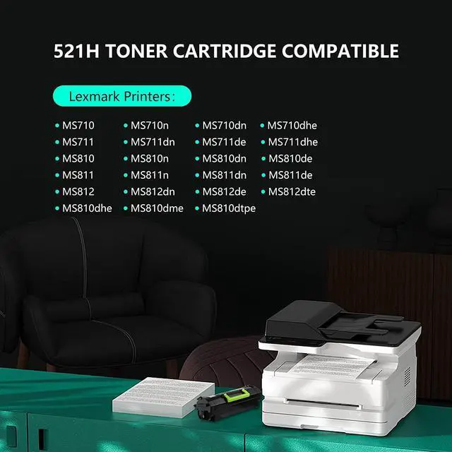 25000 high page yield, 5% coverage Our 521h toner cartridge with upgraded chip, fast recognition, perfectly compatible with lexmark printers, replacement models are as follows: