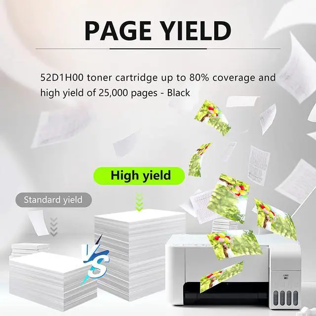 Our 52D1H00 toner cartridge has undergone multiple experiments and is made of resin, magnetic powder, and pigments to create a uniform and delicate powderClear fonts improve your work efficiency and performance; Improve children's learning efficiency; Enhance transactions between various industries