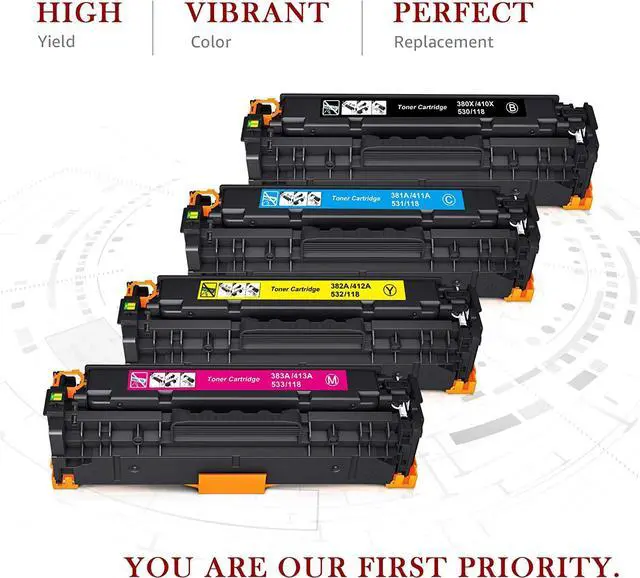 This ItemToner Kingdom Remanufactured Toner Cartridge Replacement for HP 305A 305X 312A 312X for HP Laserjet Pro 400 Color M451dn M451nw M451dw M475dw M475dn MFP M476dw M476dn M476nw Printer (4 Packs) RecommendationsValuetoner Remanufactured Toner Cartridges Replacement for HP 305A HP 312A Toner Cartridges 305X 312X High Yield for Laserjet Pro 400 300 Color M451dn M451dw M451nw M475dw MFP M476nw Printer (4-Pack) 305a Toner Cartridge - Replacement for HP 305A 305X CE410A CE410X for Laserjet Pro 400 M451dn M451nw M451dw MFP M475dn Pro 300 M375nw Printer(Black, Cyan, Magenta, Yellow, 4 Pack) 312A Toner Cartridges 4 Pack (with Chip) Replacement for HP 312A Toner Color Laserjet Pro MFP M476dn M476dw M476nw Printer | CF380A CF380A CF382A CF383A 312A Toner Cartridges 4 Pack Replacement for HP 312A Toner Compatible for HP Laserjet Pro MFP M476dn M476dw M476nw Printer Ink (Black, Cyan, Magenta, Yellow) 312A Remanufactured Toner Cartridges 4 Pack (with Chip) Replacement for 312A Toner Cartridge Color Laser Pro MFP M476 Series M476dn M476dw M476nw Printer (Black, Cyan, Magenta, Yellow)