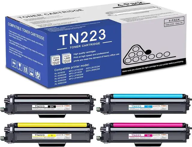 This Item4 Pack TN223 BK/C/M/Y Toner Cartridge High Yield Compatible TN223 Replacement for Brother MFC-L3770CDW L3710CW L3750CDW HL-3210CW 3270CDW 3290CDW DCP-L3510CDW L3550CDW PrinterRecommendationsTN223 TN-223 Toner Cartridge High Yield Compatible TN223BK TN223C TN223M TN223Y Toner Replacement for Brother MFC-L3770CDW L3750CDW HL-3210CW 3270CDW DCP-L3510CDW Printer (1BK+1C+1M+1Y) TN227 TN-227BK/C/M/Y High Yield Toner Cartridge 4