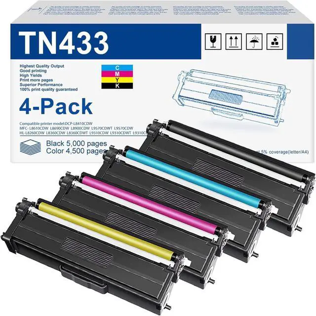 This ItemTN433 Toner Cartridge Set 4-Pack Replacement for Brother TN433 TN431 TN-431 TN-433 Toner for HL-L8360CDW Toner MFC-L8900CDW Toner HL-L8260CDW MFC-L8610CDW HL-L8360CDWT Printer, TN4334PKRecommendationsDR433CL Drum Unit & TN433 Toner Cartridge Set 4-Pack Replacement for Brother HL-L8260CDW HL-L8360CDW HL-L8360CDWT HL-L8360CDWMT MFC-L8610CDW MFC-L8690CDW MFC-L8900CDW MFC-L9570CDW (DR-433CL, TN-433) DR433CL Drum Unit & TN433 Toner Cartridge Set 4-Pack Replacement for Brother HL-L8260CDW HL-L8360CDW HL-L8360CDWT HL-L8360CDWMT MFC-L8610CDW MFC-L8690CDW MFC-L8900CDW MFC-L9570CDW (DR-433CL, TN-433) TN433 TN-433 Toner Cartridge Replacement for Brother TN 433 TN-431 for Brother HL-L8260CDW HL-L8360CDW MFC-L8610CDW MFC-L8900CDW HL-L9310CDW Printer TN433 TN-433 Toner Cartridge Set 4 Pack Compatible TN433BK TN433C TN433M TN433Y Replacement for Brother TN433 TN-433 TN 433 MFC-L8900CDW HL-L8360CDW MFC-L8610CDW Printer.