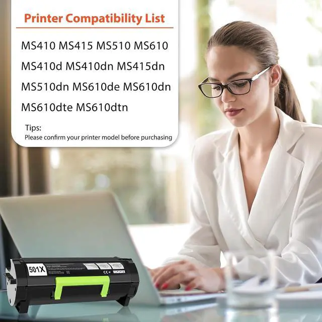 This ItemWEYNUONY 50F1X00 501X Toner Cartridge Compatible Replacement for Lexmark 501X 50F1X00 for MS410dn MS510dn MS610dn MS610dte MS610dtn MS415dn(10, 000 Pages High Yield 1 Pack Black)Recommendations501H 50F1H00 High Yield Toner Cartridge (10, 000 Pages) for Lexmark MS310dn MS310d MS312dn MS315dn MS410dn MS415dn MS510dn MS510dtn MS610dn MS610de Compatible for Lexmark 50F1000 Ink Cartridge (Black) LCL Compatible 501U High-Yield Toner Cartridge Replacement for Lexmark 50F1U00 501U 20000 Pages MS510 MS510dn MS610 MS610DN MS610DTN MS610DE MS610DTE (1-Pack Black) MANNERES 50F1H00 501H Black Toner Cartridge 1Pack Compatible 501H 50F1000 High Yield Toner Cartridge Replacement for Lexmark MS310dn MS312 MS410dn MS510dn MS610dn MS312dn MS315dn MS415dn Printer 55B1000 Black Toner Cartridge with New Chip (1-Pack) Compatible for Lexmark 55B1000 High Yield Toner Cartridge Replactment for Lexmark MS331dn MS431dn MS431dw MX331adn MX431adn MX431adw MX432adwe MEGOFFICE Compatible Toner Cartridge Replacement for Lexmark 501H 50F1H00 50F1000 for MS310dn MS310d MS410dn MS510 MS510dn MS510dtn MS610 MS610dn MS610de MS610dte MS610dtn MS312dn (Black, 2-Pack)