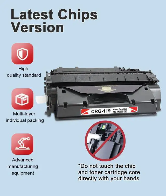High Quality Cartridge and Professional Printing: The 119 high yield toner cartridge uses safe and harmless Premium toner , each cartridge is professionally tested before leaving the factory to ensure a clear and accurate printing effect.