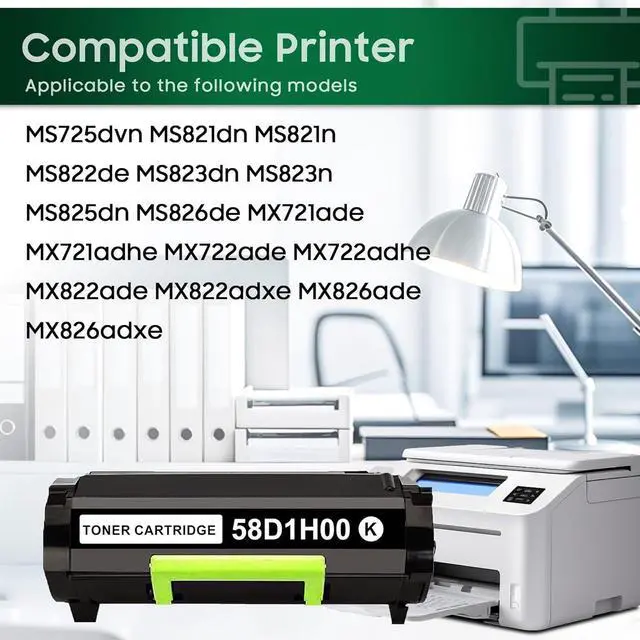 Remanufactured 58D1H00 Toner Cartridge 1-Pack 58D1H00 High Yield Toner Replacement for Lexmark 58D1H00 Black Toner for MS823 MS725 MS821 MS822 MS824 MS826 MX721 MX722 MX725 MX824 Printer