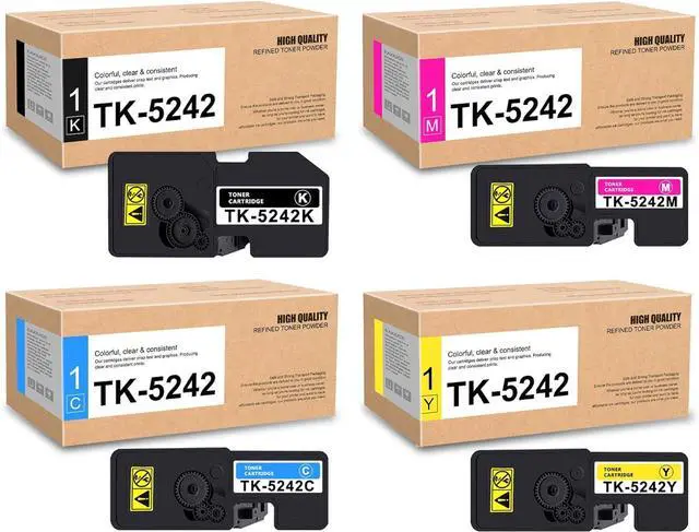 Package Contents :4 pack of high capacity toner cartridge replacement for TK-5242 1T02R70US0 1T02R7CUS0 1T02R7BUS0 1T02R7AUS0.(1BK+1C+1M+1Y)