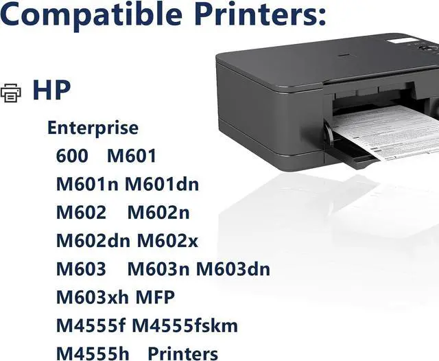Compatible with: HP Enterprise 600 M601 M601n M601dn M602 M602n M602dn M602x M603 M603n M603dn M603xh MFP M4555f M4555fskm M4555h Printer.