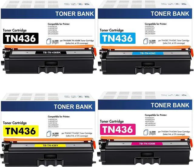 Package Contents: 1 x Black TN436BK Toner, 1 x Cyan TN436C Toner, 1 x Magenta TN436M Toner, 1 x Yellow TN436Y Toner (4 Pack )