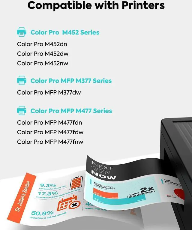 Toner Cartridge Page 11Previous pageNext pageTESEN 410A Compatible Toner Cartridge Replacement for HP 410A CF410A for HP Color Pro M452 MFP M477 M377 Series M452dn M452dw M452nw MFP M477fdw M477fnw M477fdn M377dw 4-Pack Color Combo