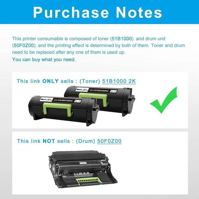 This ItemLCL Remanufactured Toner Cartridge Replacement for Lexmark 51B1000 MS317 MS317DN MS417 MS417DN MS517 MS517DN MS617 MS617DN MX317 MX317DN MX417 MX417DN MX517 MX517DE Updated Chip (2-Pack Black)RecommendationsLCL Remanufactured Toner Cartridge Replacement for Lexmark X463A11G X463A21G X463de X464de X466de X466dte X466dwe (1-Pack Black) LCL Remanufactured Toner Cartridge Replacement for Lexmark 51B1000 MS317 MS317DN MS417 MS417DN MS517 MS517DN MS617 MS617DN MX317 MX317DN MX417 MX417DN MX517 MX517DE Updated Chip (1-Pack Black) LCL Remanufactured 50F1H00 501H Toner Cartridge Replacement for Lexmark 501H 50F1000 for MS310 MS310dn MS312 MS312DN MS315 MS315dn MS410 MS410d MS410dn MS415 MS415DN MS510 MS610 (2 Black, 5, 000 Pages)