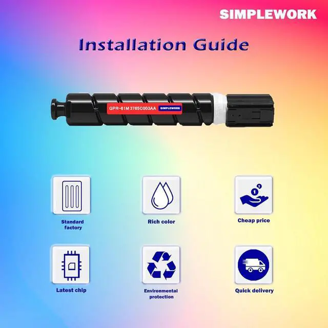 • Premium inkSIMPLEWORK comes in a separate package and is equipped with the latest IC chips. After our rigorous production phase and thorough testing, the print is crisp and colorful, delivering the same crisp text and vivid graphics as the original, for all your printing needs.