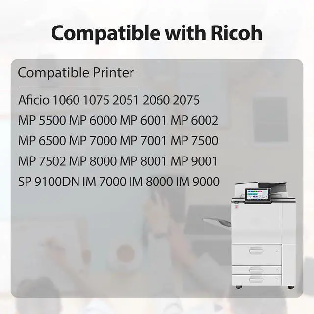 Compatibility Printer Models: Compatible with Ricoh IM 7000 IM 8000 IM 9000 Aficio 1060 1075 2051 2060 2075 MP5500 6000 6001 6002 6500 MP7000 7001 7500 7502 MP8000 8001 9001 SP 9100DN Printer