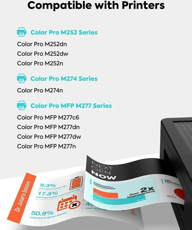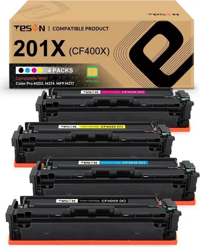 This ItemTESEN 201X Compatible Toner Cartridge Replacement for HP 201X 201A CF400X CF401X CF402X CF403X High Yield for HP Color Laser Pro M277dw M252dw M277c6 M252n MFP M277 M252 Series - 4 Packs KCMYRecommendationsINK E-SALE Replacement for HP CF400X HP 201X HP CF400A Black Toner Cartridge for use with HP Color Laserjet Pro MFP M277dw M252dw MFP M277n M252n Printer, 1 Pack TRUE IMAGE Compatible Toner Cartridge Replacement for HP 201A CF400A 201X CF400X Color Laserjet Pro MFP M277dw M252dw M252n M277c6 M277 M252 Printer Ink (Black, 1-Pack) TRUE IMAGE Compatible Toner Cartridge Replacement for HP 201X CF400X 201A CF400A Color Laserjet Pro MFP M277dw M277c6 M252dw M252n M252 M277 M277n 277dw Ink Printer (Black, 2-Pack) GPC Image Compatible Toner Cartridge Replacement for HP 201X CF400X 201A CF401X CF402X CF403X CF400A Compatible with Laserjet Pro MFP M277dw Toner M252dw M277n M252n MFP M277c6 Printer Tray(4-Pack)