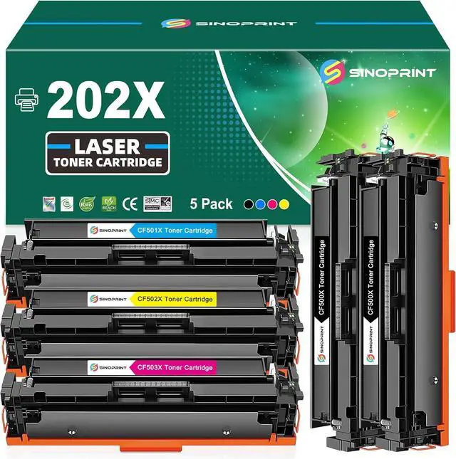 SINOPRINT Toner Cartridge Replacement for HP 202X CF500X CF500A 202A Use for HP Color Pro MFP M281fdw M281cdw M254dw M281fdn 281fdw M254 M281 Toner Printer (2Black Cyan Yellow Magenta, 5-Pack)