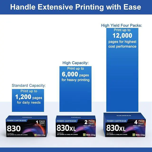 This ItemTN830XL Black Toner Cartridge Ink for HL-L2460DW Printer Replacement for Brother TN830 XL TN830 TN-830 Toner Set for DCP-L2640DW HL-L2460DWXL HL-L2405W MFC-L2820DW MFC-L2820DWXL, 4PK (with Chip) Recommendationsv4ink TN830XL Toner Cartridge Ink for Brother HL-L2460DW Printer Replacement for TN830 XL TN830 TN-830 Toner Set for DCP-L2640DW HL-L2405W HL-L2400D MFC-L2820DW HL-L2480DW Printer, 4PK High Yield V4ink Compatible TN830XL Toner Cartridge Ink for Brother HL-L2460DW Printer Replacement for TN830XL TN830 TN-830 Toner Set for DCP-L2640DW HL-L2405W HL-L2400D MFC-L2820DW HL-L2480DW Printer, (2 Black) iNKPAD TN830XL Toner Cartridges (with Chip) Replacement for Brother TN830-XL TN-830 TN830 Compatible with HL-L2460DW DCP-L2640DW HL-L2400D HL-L2405W HL-L2460DWXL MFC-L2900DW Printers (2 Pack, Black) Jeostarky Compatible TN830XL Toner Replacement for Brother TN830XL TN830 XL Toner use with HL-L2460DW HL-L2405W HL-L2400D HL-L2480DW MFC-L2820DW MFC-L2820DW XL DCP-L2640DW MFC-L2900DW (Black, 2 Pack) TN830XL Toner Cartridges Replacement for Brother TN830XL TN830 TN830 XL Toner Work for Brother HL-L2460DW DCP-L2640DW HL-L2480DW HL-L2400D HL-L2405W MFC-L2820DW Printer 2PK (High Yield)