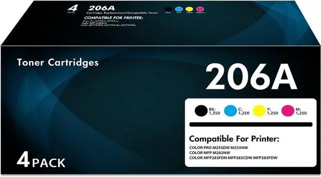 This Item206A Toner Cartridges 4-Pack with Chip | Replacement for HP 206A W2110A 206X W2110X High Yield for Color Laserjet MFP M283fdw M283cdw M283 Pro M255dw M255 Printer Ink (Black Cyan Yellow Magenta) Recommendations206A Toner Cartridges 4