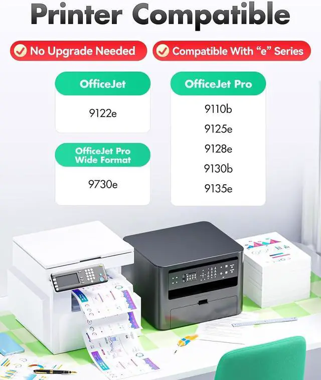 Compatible for Compatible Printer:HP OfficeJet 9122e;HP OfficeJet Pro 9110b,9125e,9128e,9130b,9135e;HP OfficeJet Pro Wide Format 9730e Printer