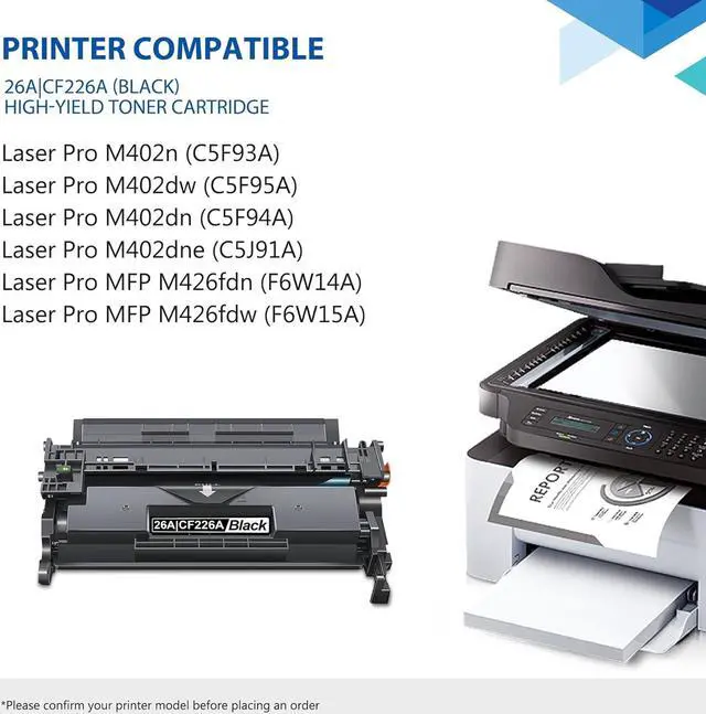 26A Black Toner Cartridge 2-Pack with Chip Replacement for HP 26A CF226A 26X CF226X Toner Cartridge 26A Ink Work with Laser Pro M402n M402dne M402dn MFP M426fdw MFP M426fdn Printer Ink | CF226AD1